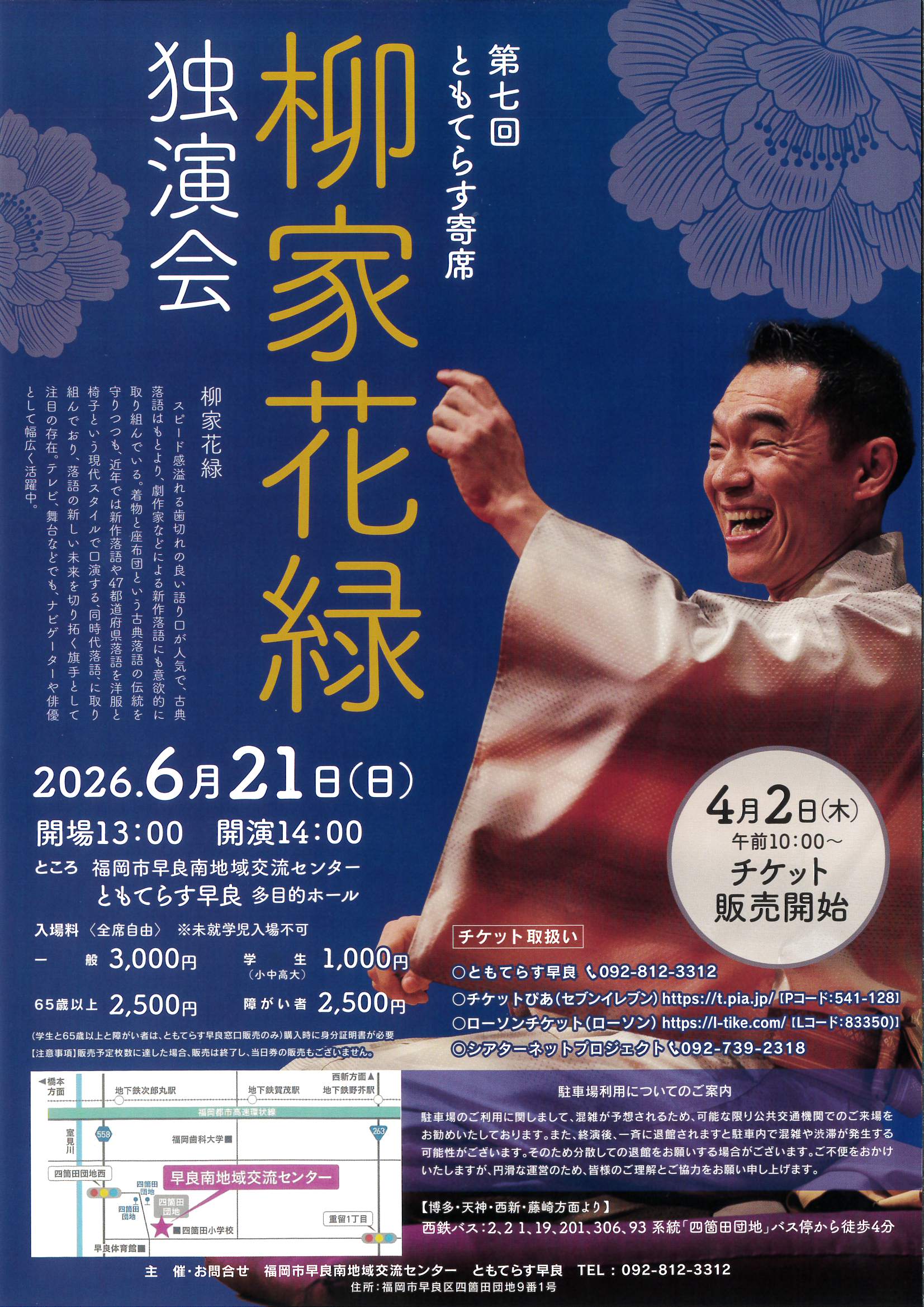 早良南交流センターでの恒例の落語会「ともてらす寄席」の第七回公演に柳家花緑が登場!