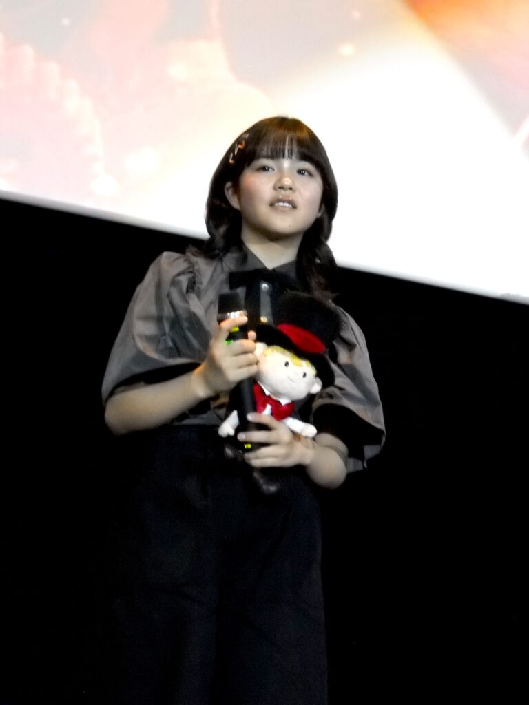 永瀬さんは「私も台本を読んだ時とか、アフレコをしている時もルビッチ頑張れって思いながら、アフレコしていました。ルビッチを応援していただけたらなと思います。異世界猫モフの声をMEGUMIさんがやっていらっしゃるんですけど、モフの喋り方とか独特な感じもすっごい面白いです。あとコメット&ウィニーっていう双子のおじいさんが出てくるんですけど、山寺宏一さんが一人二役で演っていて、ルビッチがこのパタパタに乗って飛んでいくシーンの時に、飛んでいく前に出発の音頭みたいなのが入ってるんですけど、最初に映像を見た時からすっごいびっくりして面白いなと思ったんで、この辺注目ポイントです。皆さんにもしっかり見ていただきたいです。すごいチャレンジがいっぱい詰まった映画になってます」としっかりした受け応え。